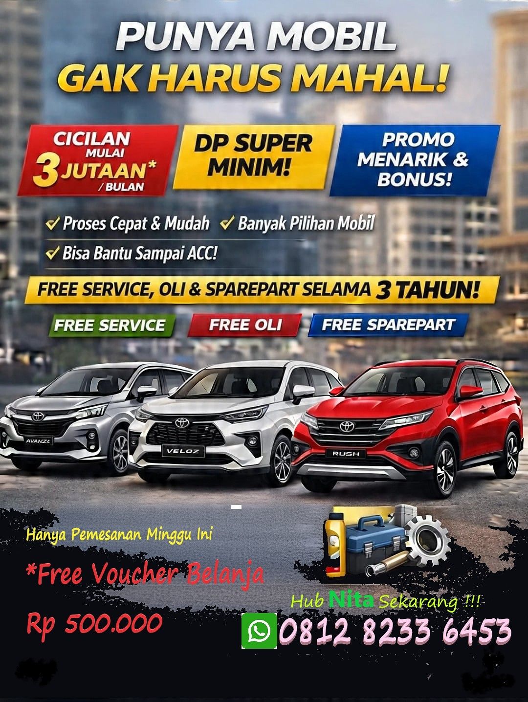 Kamis, 05 Maret 2026Promo RamadanBulan Penuh Berkah, wujutkan impian dengan mobil idaman bersama Toyota, Untuk varianAll New Avanza, Kijang Innova Zenix, New Calya hingga Rush, dapatkan,* Dp Milai 25jt* Gratis Asurasi 1 th* Bonus 1 juta utk tukar tambah Hub Kami sekarang Juga Nita0812 8233 6453 [...]